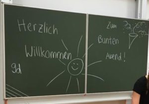 Schon beim 8er-Seminar im vergangenen Jahr war sich die Klassenfamilie der jetzige 9d einig: „Wenn es in der 9. Klasse kein Familienseminar gibt, müssen wir halt selbst etwas organisieren!“ Daher verbrachten wir das zweite September-Wochenende mit 15 Schüler*innen, 20 Eltern und einigen Geschwistern in Hobbach im Spessart. Sogar unser neuer Klassenlehrer Markus Noll fuhr mit. Bei bestem Spätsommerwetter trafen wir uns am Freitagabend im dortigen