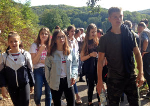 Wir Schüler*innen waren derweil unter anderem damit beschäftigt, den „Bunten Abend“ vorzubereiten und überraschten die Klassenfamilie mit einem kurzweiligen und abwechslungsreichen Programm. Improvisationstheater, Menschen-Memory, Pantomime-Raten und diverse Spiele luden alle zum Mitmachen ein und sorgten für ausgelassene Stimmung. Am Sonntag überredeten uns die Eltern zu einer gemeinsamen Wanderung. Das stoß zwar zuerst nicht auf unsere Begeisterung, aber dann kamen doch alle mit und es war ein schöner Abschluss. Am Ende waren wir uns einig: „Das Wochenende hat viel Spaß gemacht und stärkte das Gemeinschaftsgefühl in unserer Klassenfamilie. Es war auch interessant, mit Eltern von Mitschüler*innen Gespräche zu führen und sie näher kennen zu lernen.“ Ein besonderer Dank gilt den Eltern des Orga-Teams für die tolle Planung sowie Herrn Noll, der erst nach den Sommerferien die Klassenleitung übernommen hatte und spontan mitfuhr. „Wir finden es toll, dass wir Herrn Noll gleich außerhalb der Schule etwas besser kennenlernen konnten und freuen uns umso mehr auf die kommenden zwei gemeinsamen Jahre“, so sprach eine Schülerin sicher auch für viele Mitschüler*innen und Eltern. Die Ideensammlung für ein Familienwochenende in der 10. Klasse hat nun begonnen – wir werden gerne wieder berichten!