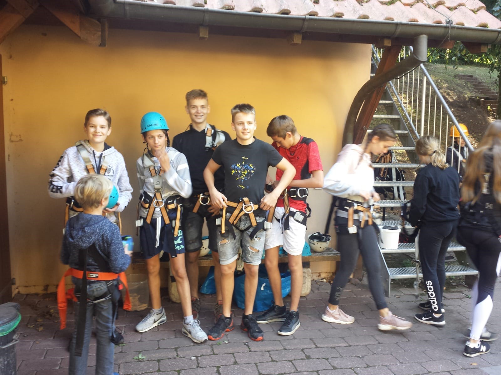 Schullandheim. Wir Schüler*innen bezogen getrennt von den Eltern unsere Zimmer. Nach dem gemeinsamen Frühstück am Samstag konnten wir unsere Geschicklichkeit im Hochseilgarten unter Beweis stellen. Hier war Teamarbeit gefragt, da wir uns gegenseitig sichern mussten, als wir