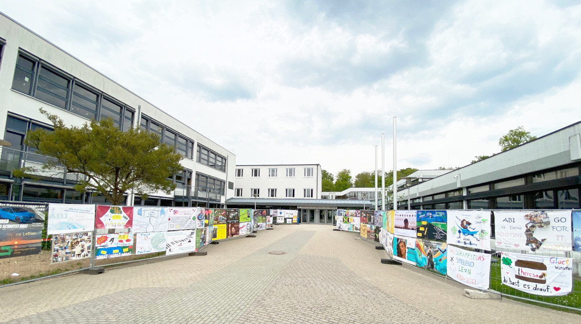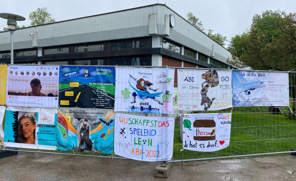 Wie die zahlreichen Plakate am Schuleingang zeigen, unterstützt die Schulgemeinde die Abiturienten und drückt die Daumen. Wir wünschen allen Prüflingen viel Erfolg!