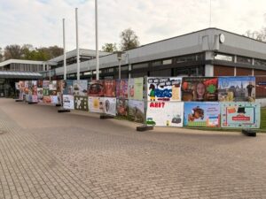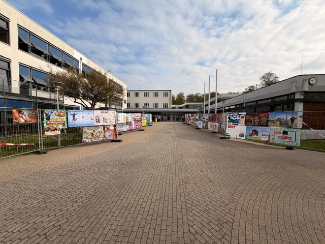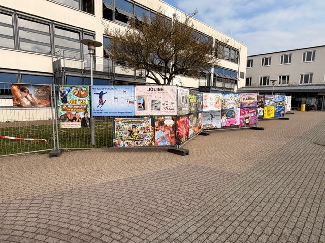 Es ist mittlerweile eine Tradition, den Eingang zur Schule zu Beginn der Abiturprüfungen mit Plakaten für die Abiturientinnen und Abiturienten zu schmücken.