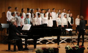 Schmölzing. Vorgetragen wurden sie von den „jüngsten“ Sängerinnen und Sängern der Kreuzburg, dem Chor der Jahrgangsstufe 5 (Leitung: Dr. Maria-Elisabeth Heisler-Wiegelmann, am Flügel begleitet von Thomas Wiegelmann). Der