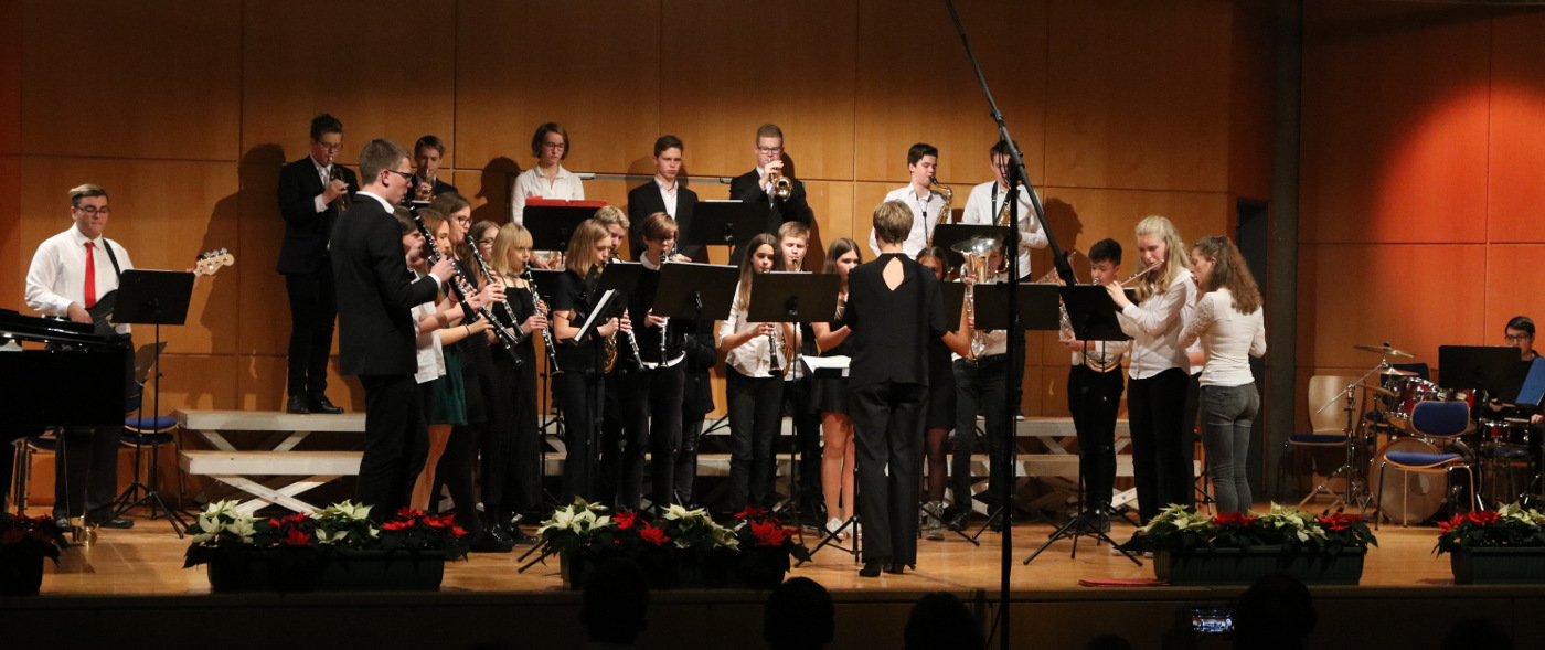 Die „Kleine Bigband“ (Leitung: Peter Loschert) erfreute das Publikum mit zwei Weihnachtsliedern aus England („Away in a Manger“ und „Good King Wenceslas“) sowie dem französischen Weihnachtslied „Gloria in excelsis deo“.