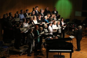 der Chor, der von Peter Loschert vom Flügel aus geleitet wurde, dann beschwingt einem eher amerikanischen “Christmas-Feeling” zu. Der Jugendchor (Leitung: Andreas Heindel) wartete im Anschluss mit zwei weihnachtlichen Chorliedern auf. Dem gefühlvollen Anthem „Light a Candle of Hope“ von John Purifoy folgte „Tell me, tell me!“ von Sally K. Albrecht und Jay Althouse im Gestus. Daniel Walter begleitete souverän am Flügel.