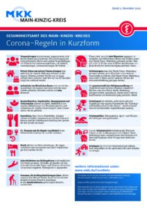Nebenstehend finden Sie die aktuellen Corona-Regeln des MKK (Stand: 2. November 2020).