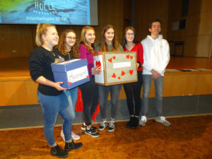 Da Antonia jetzt nicht mehr an der Schule ist, hat die Klasse 9d die Verantwortung für die „Herzenspost“ an unserer Schule übernommen. Dazu haben sie einen Briefkasten gebastelt, der nun bei den elektronischen Vertretungsplänen steht. Daneben steht ein zweiter Karton bereit, in dem Papier und Karten zur Verfügung gestellt werden. „Es wäre schön“, bitten die Schülerinnen und Schüler, „wenn ihr zuhause nachschauen könntet, ob ihr noch Papier oder Karten habt, die ihr nicht mehr braucht. Diese könnt ihr dann als Spende in den Karton legen, damit immer genug für alle da ist.“