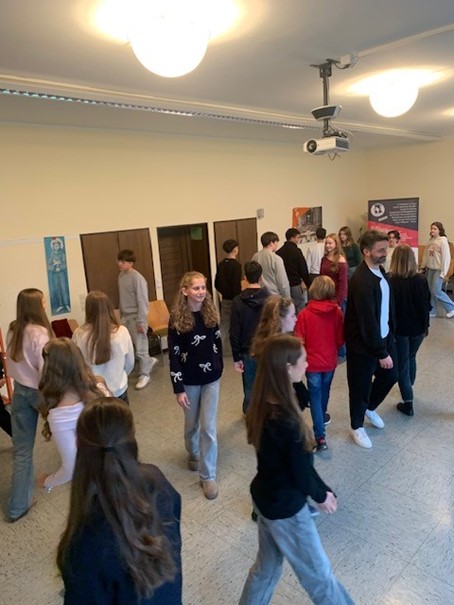 Franziskus L. (9e) schreibt dazu: “Zu Beginn wurde erklärt, dass es in dem Workshop um Zivilcourage geht, was Zivilcourage bedeutet und wie man in bestimmten Situationen, in denen Zivilcourage erforderlich ist, richtig reagiert. Im Workshop haben wir dann verschiedene Übungen zu diesem Thema gemacht und gelernt, wie man sich entsprechend verhält. Hier ein paar Beispiele: