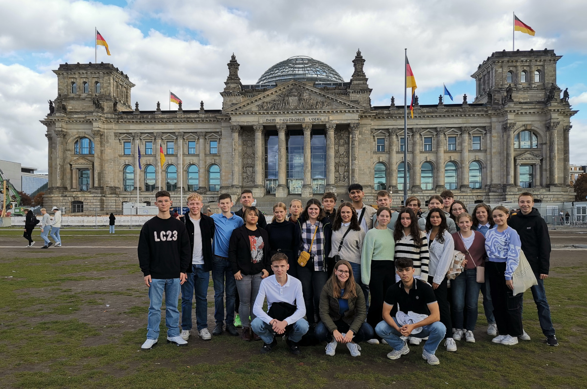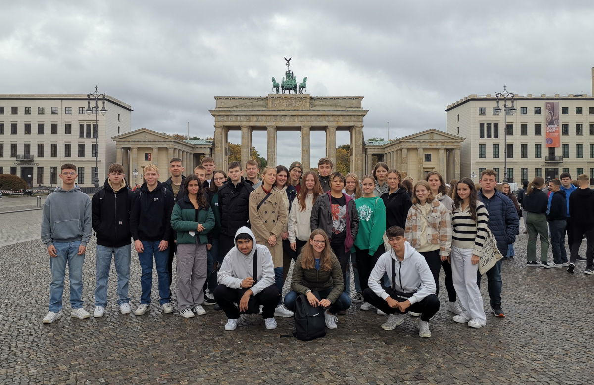 Die Abschlussfahrt der 10. Klassen nach Berlin fand in diesem Schuljahr nicht im Frühjahr, sondern bereits in der letzten Schulwoche vor den Herbstferien statt. Die Fahrt hatte einen historisch-politischen Schwerpunkt und die Schülerinnen und Schüler setzten sich dabei insbesondere mit der deutsch-deutschen Vergangenheit auseinander. Viele nachdrücklich wirkende Hintergrundinformationen lieferte ein Besuch auf dem ausgedehnten Areal der Gedenkstätte Berliner Mauer in der Bernauer Straße und das Gespräch mit Zeitzeugen im ehemaligen Stasigefängnis Höhenschönhausen.