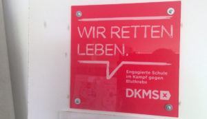 Seit einigen Wochen sticht im bereits vorhandenen „Schilderwald“ der Auszeichnungen unserer Schule eine neue, leuchtend rote Plakette ins Auge: Die DKMS Stiftung Leben Spenden hat unser Franziskanergymnasium Kreuzburg als „engagierte Schule im Kampf gegen Blutkrebs“ ausgezeichnet. Ganz konkret fünf Registrierungsaktionen der vorpandemischen Abiturjahrgänge 2015-2019 leisteten einen deutlichen Beitrag: Im Rahmen der Infoveranstaltungen zum Thema Knochenmarkspende, die vom Religionsunterricht im letzten Halbjahr vor dem Abitur im Rahmen des Schwerpunktthemas „Ethik“ vor- und nachbereitet wurden, registrierten sich in diesen Jahren insgesamt rund 300 Schülerinnen und Schüler in der Knochenmarkspenderdatei. In der nun von der DKMS an die Kreuzburg verliehenen Belobigung heißt es: „Sie zeigen vorbildhaft, wie gut sich Lernen und soziales Engagement miteinander verbinden lassen […]. Mit Hilfe der durch Ihre Abiturienten erweiterten Registrierungsdatei helfen Sie dabei, die Überlebenschancen von Menschen mit Blutkrebs und anderen Erkrankungen des blutbildenden Systems weltweit zu verbessern.“ Höhepunkt des Schreibens ist der Verweis darauf, dass bereits zwei ehemalige Abiturienten ganz konkret das Leben eines Menschen retten konnten. Sie wurden als genetische Zwillinge einer erkrankten Person identifiziert und waren bereit, mit ihrer Knochenmarkspende neue Lebenschancen zu schenken. Eine schöne Motivation für den nächsten Abiturjahrgang, die Kooperation mit der DKMS fortzusetzen!