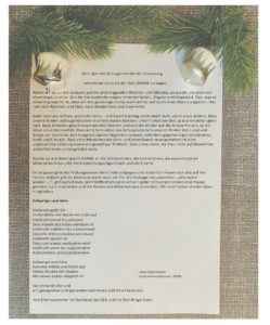 Wie auch in den vergangenen Jahren haben wir vom SEB auch dieses Jahr den „guten Geistern“ , die überwiegend im Hintergrund (Verwaltung, Cafeteria, Bibliothek, …) ihre wichtigen Dienste leisten und daher leicht auch mal vergessen werden, ein kleines Präsent überreicht. Vor ein paar Jahren wurde der Wunsch einzelner EmpfängerInnen geäußert, den aufgewendeten Betrag doch lieber einem wohltätigen Zweck zukommen zu lassen. Da es uns aber wichtig ist, wenigstens eine Geste der Anerkennung, der Dankbarkeit und des Aneinander-Denkens zu überreichen, sind wir in den letzten Jahren dazu übergegangen, die Präsente und Weihnachtskarten im SEB-Vorstand selbst herzustellen. Wir hoffen damit einen guten Weg gefunden zu haben. Dieses Jahr freuen sich hoffentlich die Beschenkten über Träume, die sie zum Wachsen bringen lassen können.