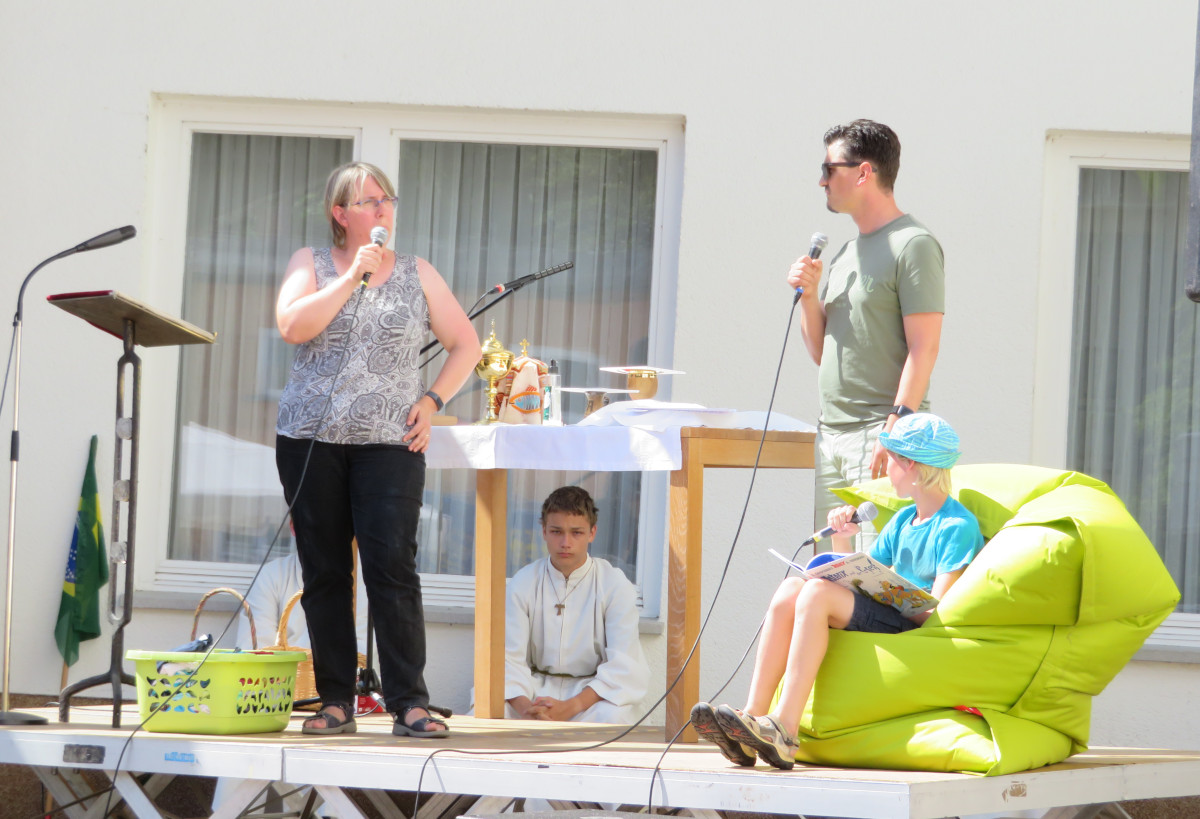 Natürlich ist kurz vor dem Urlaub noch so vieles zu tun und das am besten gleichzeitig. Da kann es schon mal passieren, dass man nicht weiß, wo einem der Kopf steht. So ging es der Mutter in dem kurzen Anspiel beim Familiengottesdienst, das sich an der biblischen Geschichte der beiden Schwestern Martha und Maria orientierte. Im Laufe der Handlung erklärte jemand: „Jesus ist der Meinung, dass man sich auf eine Sache fokussieren sollte, anstatt alles auf einmal zu versuchen. So, wie es in dem bekannten Spruch heißt: ‚Wenn ich stehe, dann stehe ich. Wenn ich gehe, dann gehe ich…`, usw.“. Das ist der Hinweis zu einer echten Ruhe, die Gott uns gönnt. Die Sacro-Pop-AG um Andreas Heindel freute sich über ihren Auftritt und begleitete zur Freude aller den Gottesdienst musikalisch. Am Ende erhielten die Teilnehmenden ein Cocktailschirmchen, das sie daran erinnern sollte, sich im Urlaub auf eines zu konzentrieren und nicht zu viel zu wollen. Auch erging die Bitte, ein Foto mit dem Schirmchen an einem „Chill-Ort“ zu machen und es mit anderen zu teilen. Vielleicht eine Anregung zum Nachahmen für dich/Sie?