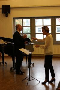Musikalisch gut vorbereitet zeigte sich der Chor auch im vollbesetzten Alfons-Lins-Haus, nachdem Thomas Wiegelmann (E-Piano) und Tochter Monika (Klavier) als Überraschung für das Geburtstagskind einen schwungvollen „Tango“ von Astor Piazolla musikalisch „überreichten“.