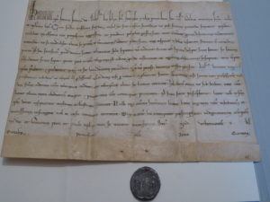 Pergamentherstellung und des Schreibens erläuterte. Das Juwel war jedoch die „Päpstliche Bulle“, in der der Papst die Gründung des Ordens erlaubte; die offizielle Geburtsstunde des Franziskaner-Ordens. Selbst viele Franziskaner haben sie noch nie im Original gesehen. Das haben ihnen einige unserer Schüler jetzt voraus.
