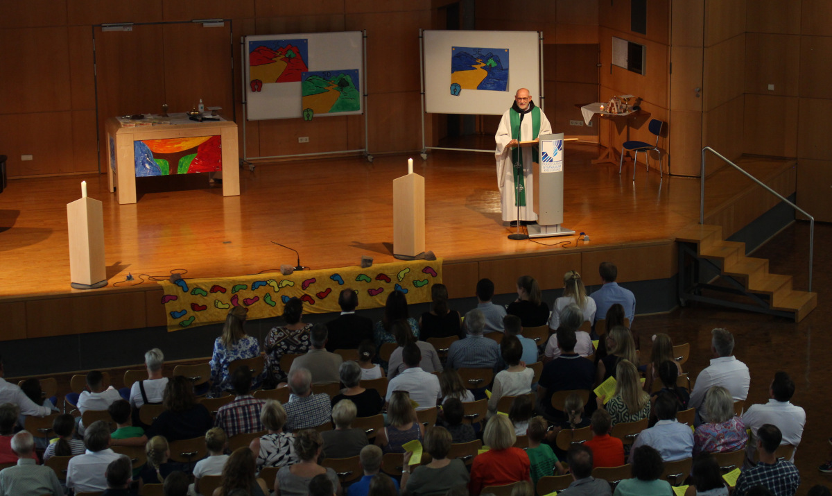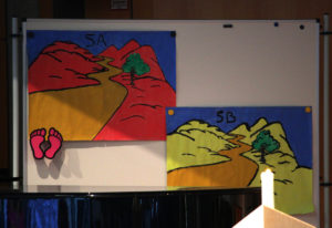 Unter dem Motto „Auf dem Weg – gemeinsam Spuren legen“ erwartete die neuen 5.-Klässler und ihre Familien ein Theaterstück zum Thema „Spuren und Erinnerungen“, die in den Herzen der Menschen bleiben, während Fotos und Bilder verblassen bzw. verloren gehen. Gleichzeitig erfuhren die Kinder, dass Spurensuche eine Möglichkeit ist, sich auf den Weg zu machen, um Gottes Spuren mitten im täglichen Leben zu finden – so auch im Schulalltag.