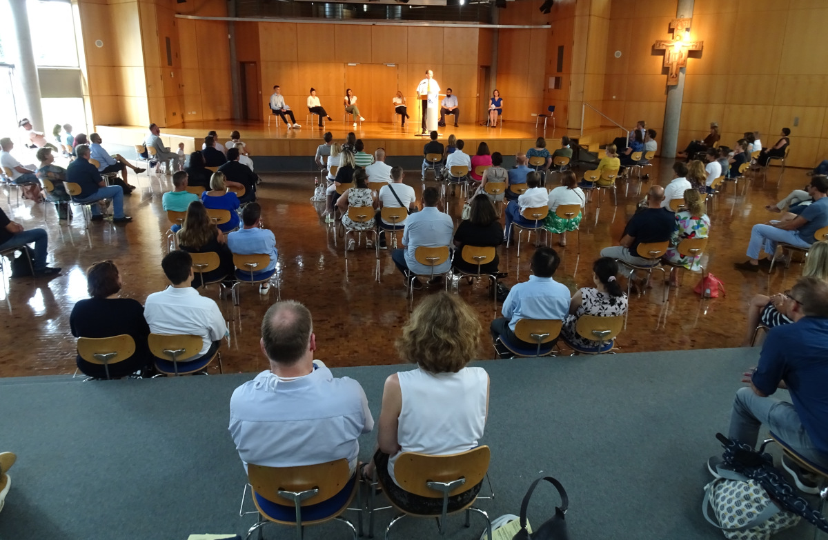 Zum Schuljahresbeginn begrüßte das Franziskanergymnasium in diesem Jahr 153 neue Schülerinnen und Schüler in den 5. Klassen. Aufgrund der nach wie vor unsicheren Covid-19-Situation wurden die neuen 5-er dieses Jahr in zwei nacheinander folgenden Feiern willkommen geheißen.