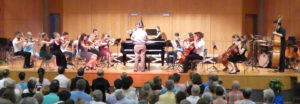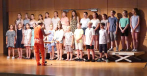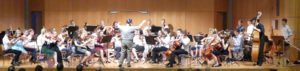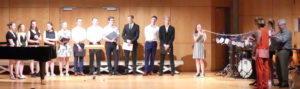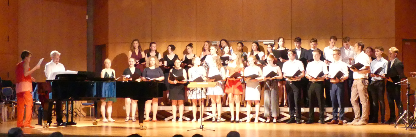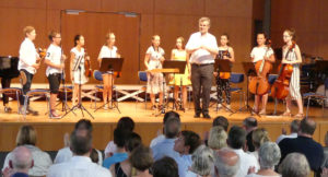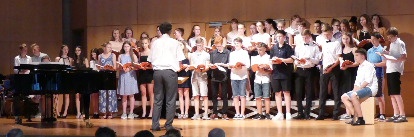 Eingebettet war die Baumpflanzung in den festlichen Rahmen des Sommerkonzerts. Zum Abschluss des Schuljahres zeigten die Musik-AGs der Schule nochmals ihr Können. Eine große Vielfalt von klassischen Werken über Volksmusik zu Pop war von den Chören zu hören. Das Orchester dagegen konzentrierte seine Aufführung in diesem Jahr ganz auf Filmmusiken und wurde bei „Winnetou & Old Shatterhand“ von der Bigband unterstützt. Bei sommerlich heißen Temperaturen schwitzten nicht nur die Musiker sondern auch das Publikum in der vollen Aula. Trotzdem ließ es sich von den Melodien mitreißen und spendete begeisterten Applaus.
