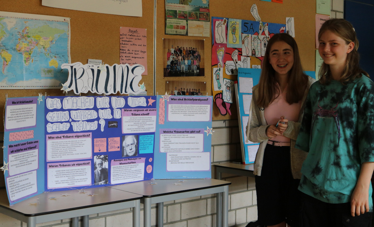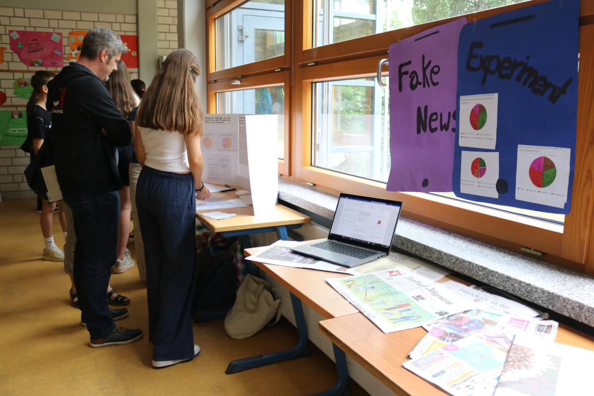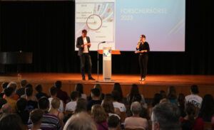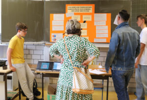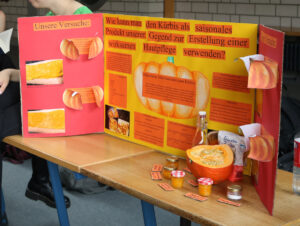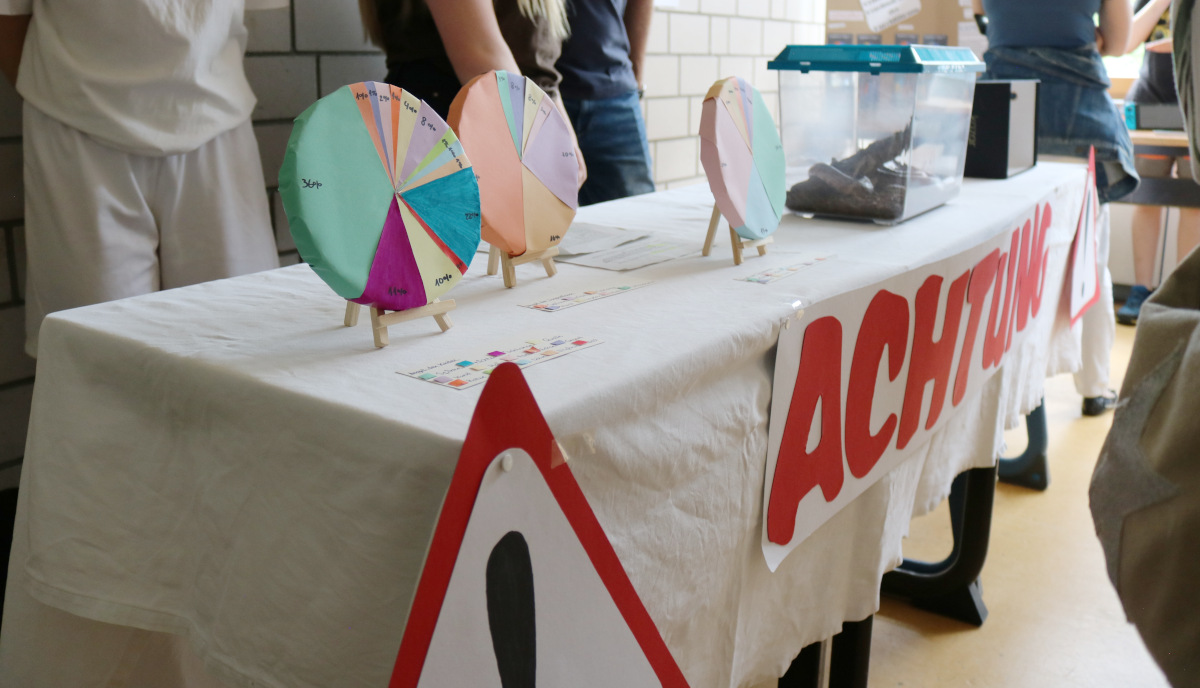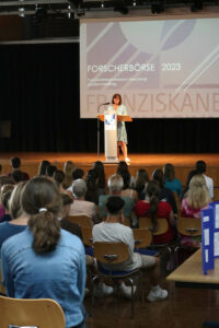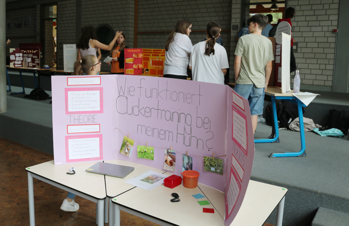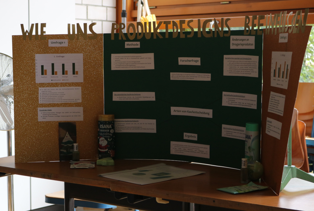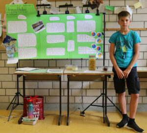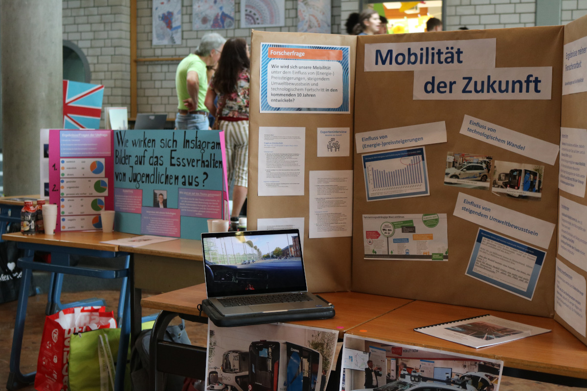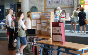 Nachdem die Lernenden zuvor ihre Forschung bereits in einer kleinen wissenschaftlichen Hausarbeit, der sog. Forscherarbeit, verschriftlicht hatten, bildete die Präsentation der Ergebnisse nun den Abschluss des „Eigenständigen Forscherjahres“. An eigens für diesen Tag gebauten Ständen mussten die Lernenden nun den zahlreichen Besuchern Rede und Antwort stehen.