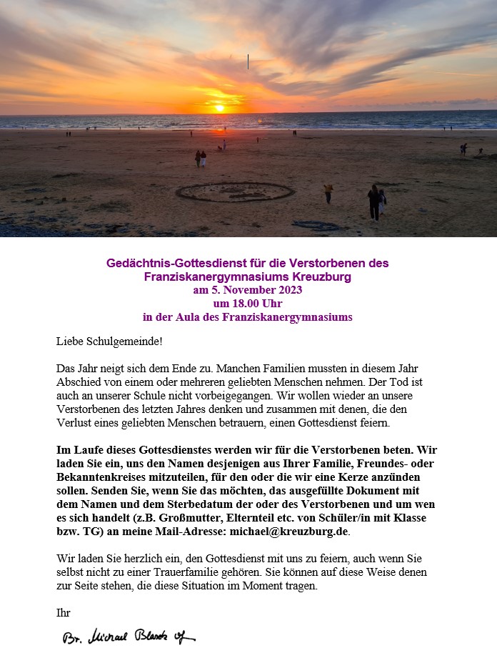 Gedächtnis-Gottesdienst für die Verstorbenen des Franziskanergymnasiums Kreuzburg