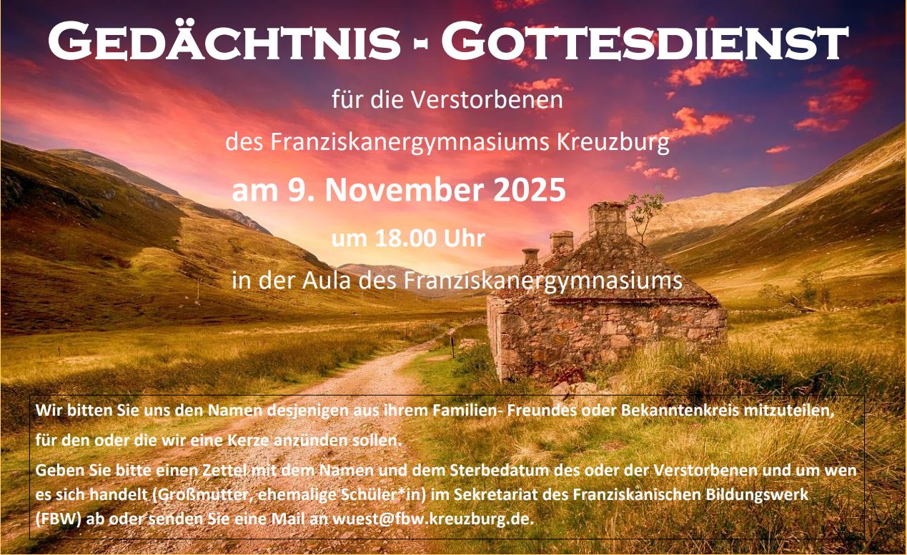 Gedächtnisgottesdienst am 09. November 2025 um 18:00 Uhr