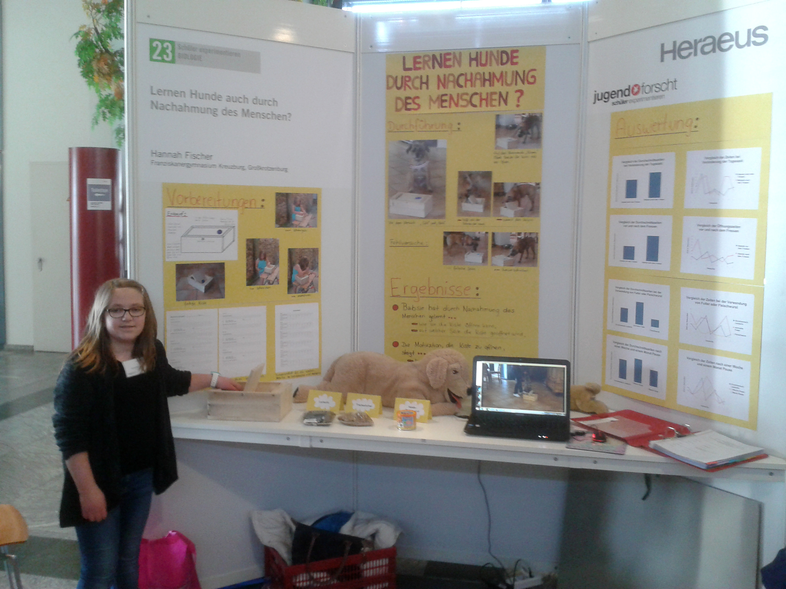 In ihrer Arbeit erforschte sie, ob Hunde auch durch Nachahmung des Menschen lernen.