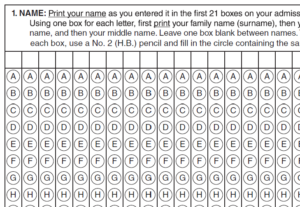 Bereits die Eintragung persönlicher Daten in Spalten war in ungewohnter Weise zu erledigen (siehe Abbildung), sodass hier schon mal das Schwärzen der kleinen Kreise auf dem Antwortblatt geübt werden konnte. Als das in Perfektion gelungen war, konnte man sich über einen reibungslosen Wettbewerbsablauf freuen. Auch die Lehrerschaft des Faches Englisch ist natürlich gespannt auf die Einzelergebnisse und darüber hinaus darauf, wie die Schülerinnen und Schüler sich als Team im Rahmen des Wettbewerbs geschlagen haben.