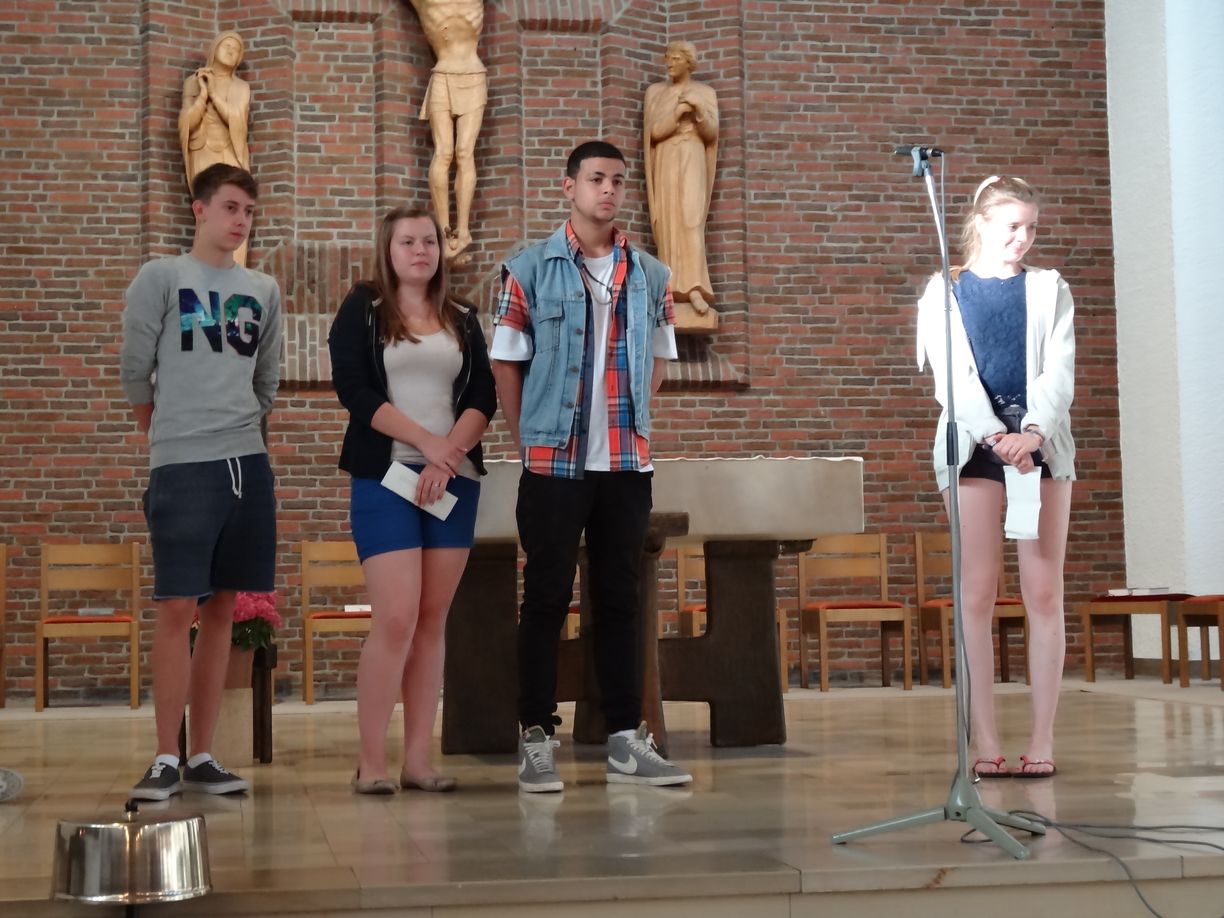 So lautete das Tagesgebet des Gottesdienstes zum Schuljahresabschluss für die Oberstufe, den der Religionskurs der Jahrgangsstufe 11von Beate Brettinger vorbereitet hatte.