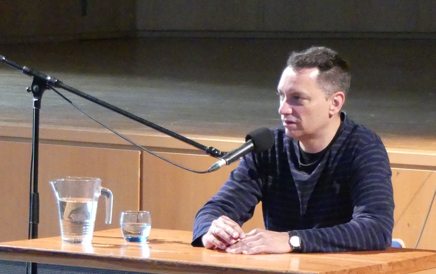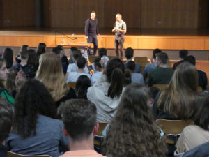 so sagt der Literaturkritiker Christoph Schröder von sich und meint damit seine interessante Nebenbeschäftigung: Er ist nämlich auch seit Jahren Fußballschiedsrichter (bis hinauf in die Landesliga) und hat aus dieser Erfahrung heraus ein Buch mit ebendiesem Titel geschrieben. Daraus stellte er am 6. Juni unseren 9. Klassen in der Aula einige informative, spannende und bewegende Ausschnitte vor und regte die Schüler damit zu einer Menge Fragen an. Schröder nahm sie wie gute Pässe an und dribbelte sie weiter – ins Tor der Antwort sozusagen. So wissen wir jetzt, welche Farbe die Schiedsrichterkluft inzwischen außer schwarz auch haben kann (bunt), wo die Rote Karte steckt (hinten), wieviel man als Schiedsrichter verdient (wenig, jedenfalls unterhalb der Bundesliga), ob das Verhalten auf dem Platz rauer geworden ist (ja, eindeutig, besonders bei jüngeren Spielern), welche Spielertypen es gibt (wie im richtigen Leben und im Beruf auch) … . Und wie man sich auf dem Platz die nötige Autorität verschafft –, das würde hier zu weit führen. Aber zum Glück gibt es Schröders Buch ja in der Kreuzburgbibliothek.
