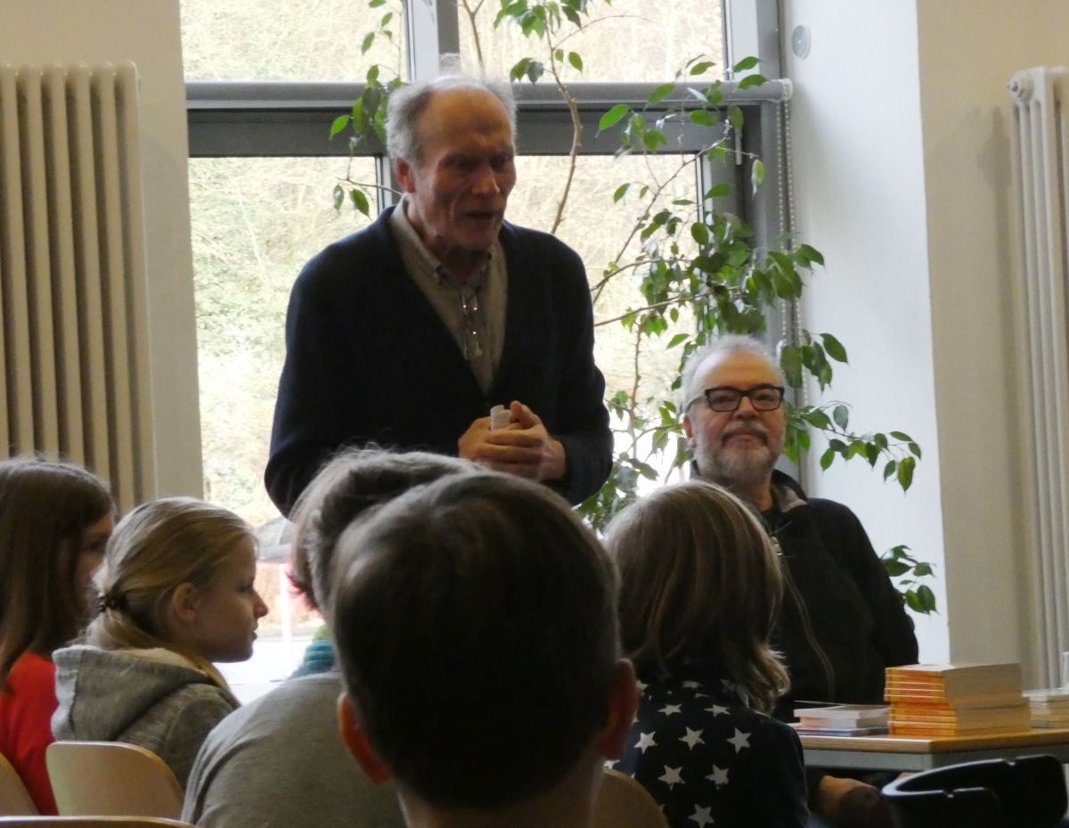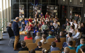 So begegneten unsere 5. Klassen alle am 14. Februar in der Bibliothek dem Archäologen und Jugendautor Franjo Terhart, der im Zuge einer langen Lesereise durch Süddeutschland auch bei uns vorbeikommen konnte. Er ist bekannt für seine Mitratekrimis, die oft in früheren Zeiten spielen, zum Beispiel bei den alten Römern; und er kann auf diese Weise seine Zuhörer sehr schnell in die Vergangenheit entführen und packend von ihr erzählen. Er kennt sich dort bestens aus und war auch schon bei diversen archäologischen Ausgrabungen dabei.