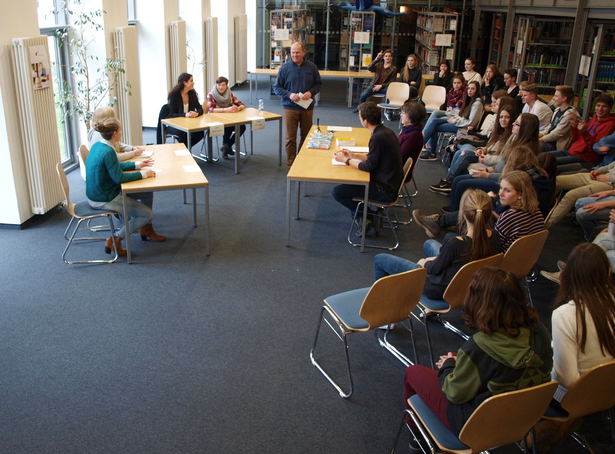 An der Kreuzburg ermittelten deshalb alle Deutschkurse der Jahrgangsstufe 10 zunächst ihre kursbesten Debattanten. Aus diesem 16er – Teilnehmerfeld wurden dann in vier Vorrundendebatten die vier Schüler herausgefiltert, die später im Schulfinale gegeneinander antreten sollten. Thema der Vorrundendebatten war „Soll an unserer Schule das Tragen von Hotpants erlaubt werden?“