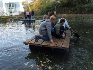 Dazu besuchten die SchülerInnen einen (Team-)Hochseilgarten, waren in Kleingruppen auf einem Orientierungslauf unterwegs, bauten und steuerten gemeinsam Flöße und durften mit Pfeil und Bogen umgehen.