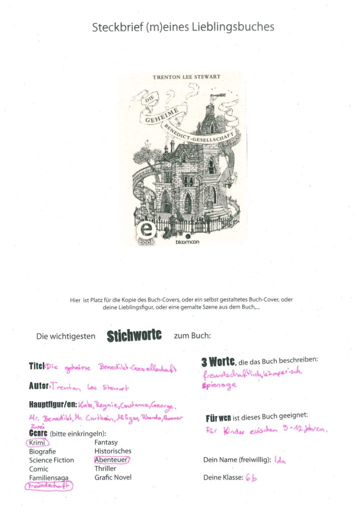 P.S. Wer sich beteiligen möchte, kann das gerne tun! Hier einfach einen der Lieblingsbuch-Steckbriefe herunterladen, bearbeiten und an becker@kreuzburg.de zurücksenden.