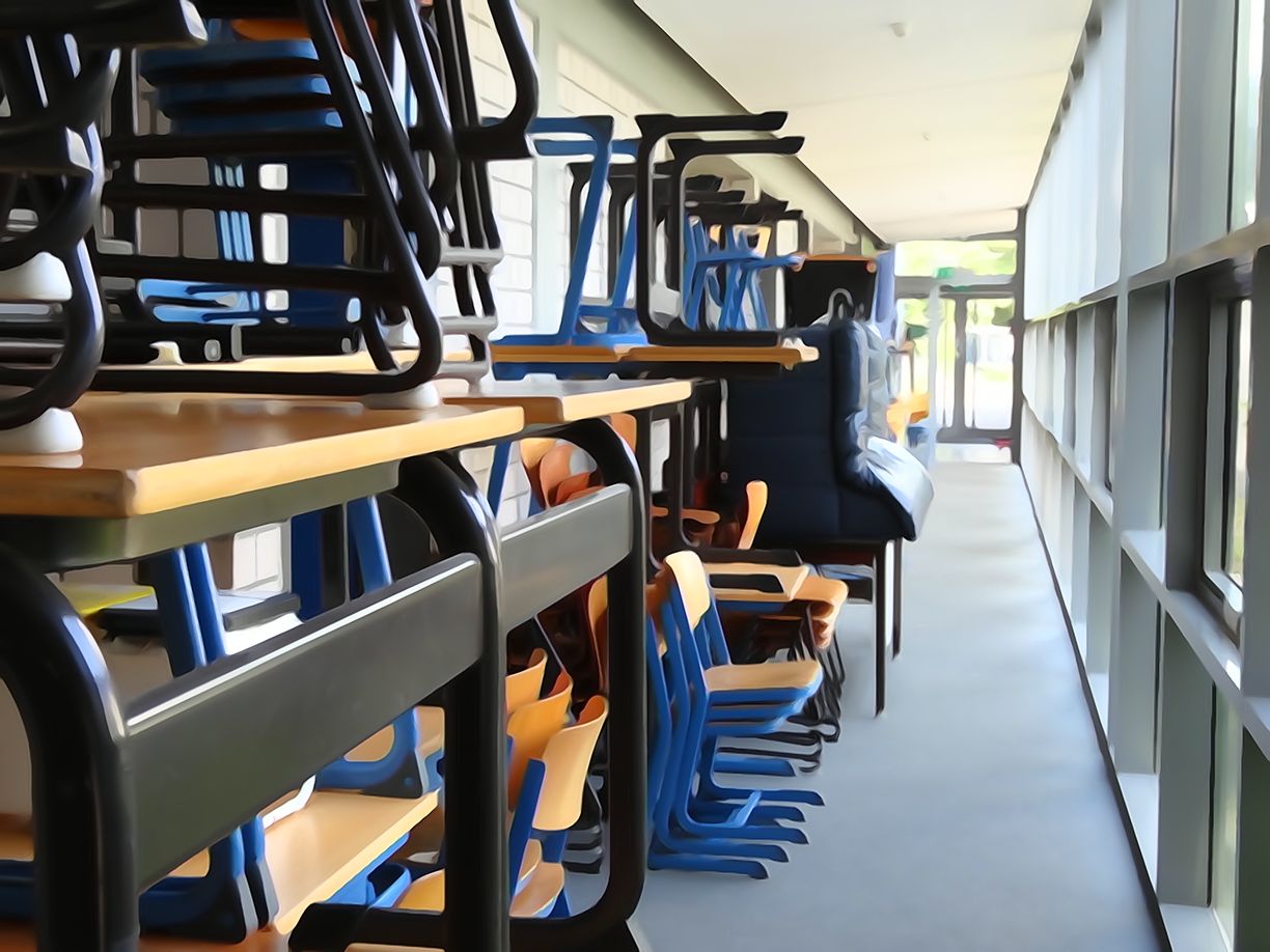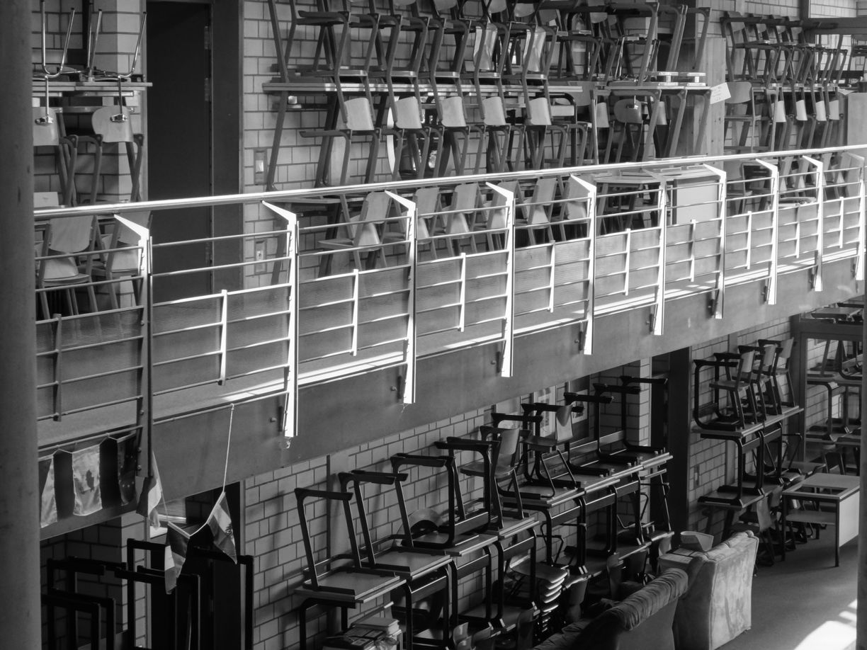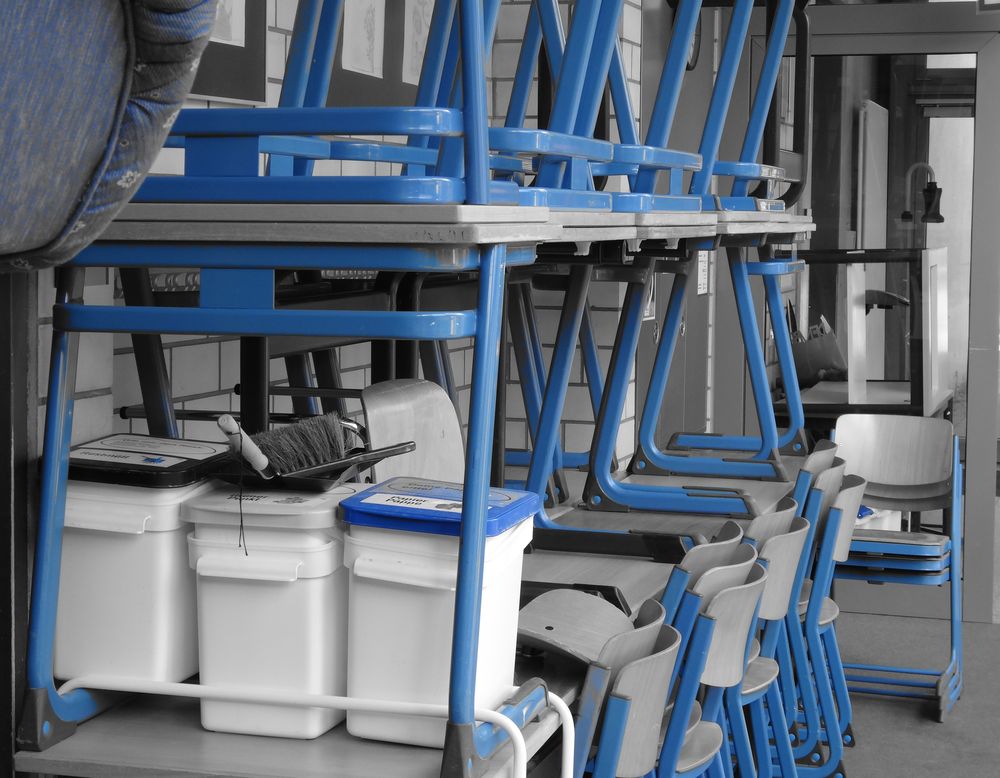 Mit Hilfe von Eltern und Schülern wurden am 27. Juli die Klassenräume für die Grundreinigung geleert. Dadurch ergeben sich nun ganz neue Perspektiven der vertrauten Räume. Ein Fotoshooting zeigt, wie sich die Schule zu einem begehbaren Kunstobjekt verwandelte.