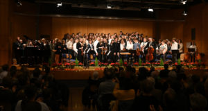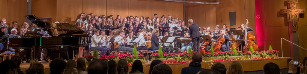 Nach der Pause kam unter der Leitung von Peter Loschert der Elternchor zusammen mit dem Kreuzburg-Orchester mit klassischen Weihnachtsliedern auf die Bühne.
