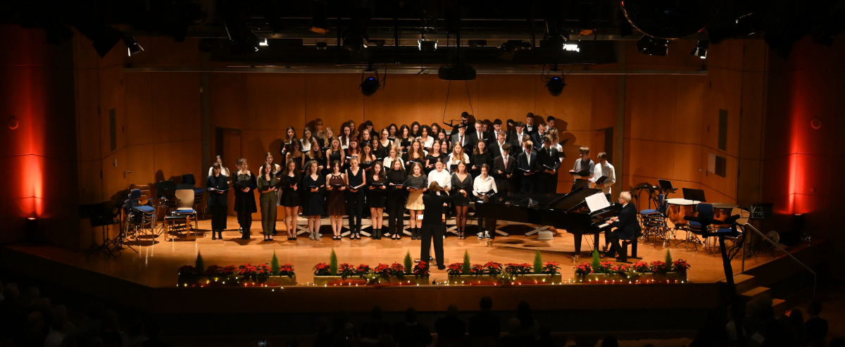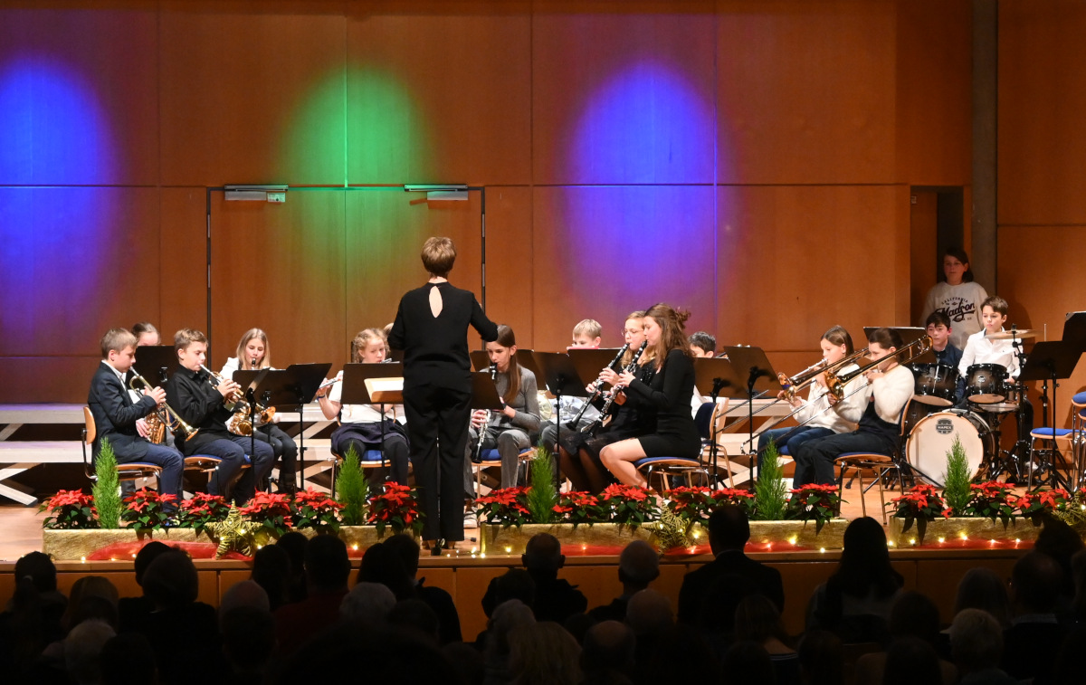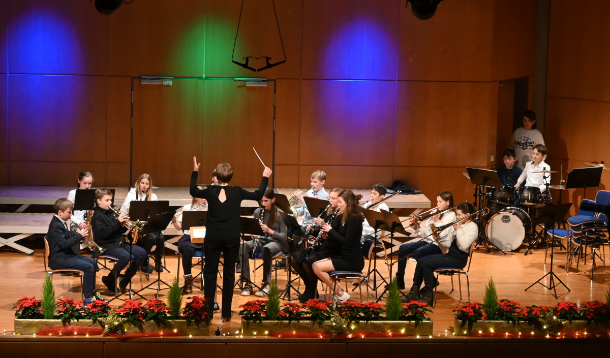 Für das Finale mit „All bells in Paradise“ vereinten sich nochmals alle Musiker:innen auf der Bühne. Nach begeistertem Applaus durfte aber auch der traditionelle Abschluss nicht fehlen, bei dem das Publikum eingeladen wurde, „O du fröhliche“ mitzusingen.