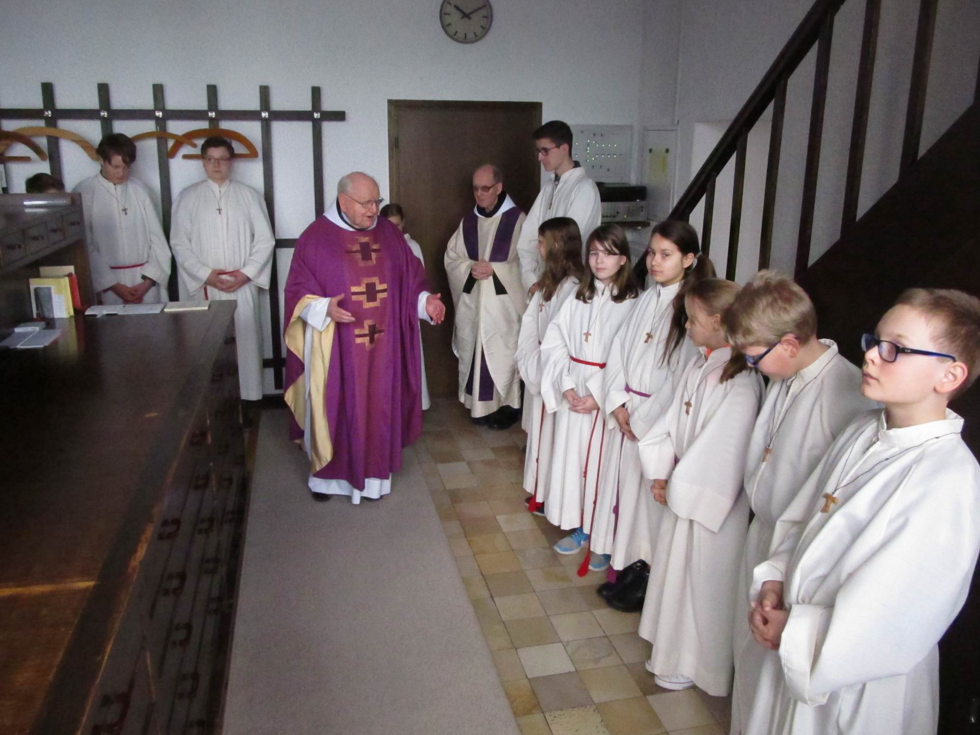 Am Sonntag, den 22. April 2015, konnten im Gottesdienst neun neue Ministranten in die Kreuzburg-Gemeinde aufgenommen werden. Nachstehend einige Fotos der Ministranten.