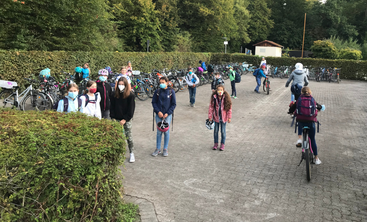 Am vergangenen Montag erhielten die Jahrgangsstufen 5 und 6 einen eigenen „Fahrrad-Parkplatz“. Aufgrund eines Hinweises der neuen „Fünfer“ an die Schulleitung bezüglich der Enge an dem bestehenden Abstellplatz parallel zur Niederwaldstraße willigte der Konvent ein, seine Fahrradständer für die beiden Jahrgangsstufen freizugeben. Mit Gummibärchen begrüßte die Schulleitung am Montagmorgen die Jüngsten der Schulgemeinde zur Einweihung. Der neue Fahrradparkplatz wird gut angenommen und hat damit zur Entlastung aller fahrradfahrenden Schülerinnen und Schülern geführt. Vielen Dank den neuen Fünfern für ihre konstruktive Rückmeldung und dem Konvent für die großartige Lösung.