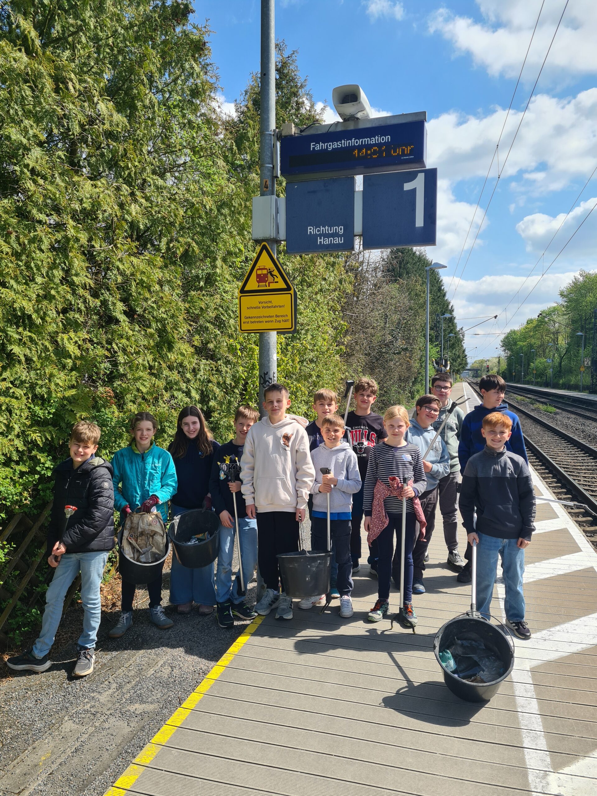 Erneut beteiligte sich die Kreuzburg an der Aktion „Saubere Gemarkung“, die jedes Frühjahr von der Gemeinde Großkrotzenburg organisiert wird. Erneut übernahm die Outdoor-AG diese Aufgabe, die durch ihre Bewegung außerhalb des Schulgeländes die ein oder andere Abfallecke in den letzten Monaten schon aufgespürt hatte. Diesmal statteten die Outdoorprofis der Schule nach einem Einschätzungsquiz rund um das Thema Mikroplastik aber zunächst dem Bahnhofsgelände einen dringenden Besuch ab, bevor noch der Abfall auf einigen Wegen und Flächen rund um das Schulgelände eingesammelt wurde. Mehrere Eimer wurden voll!