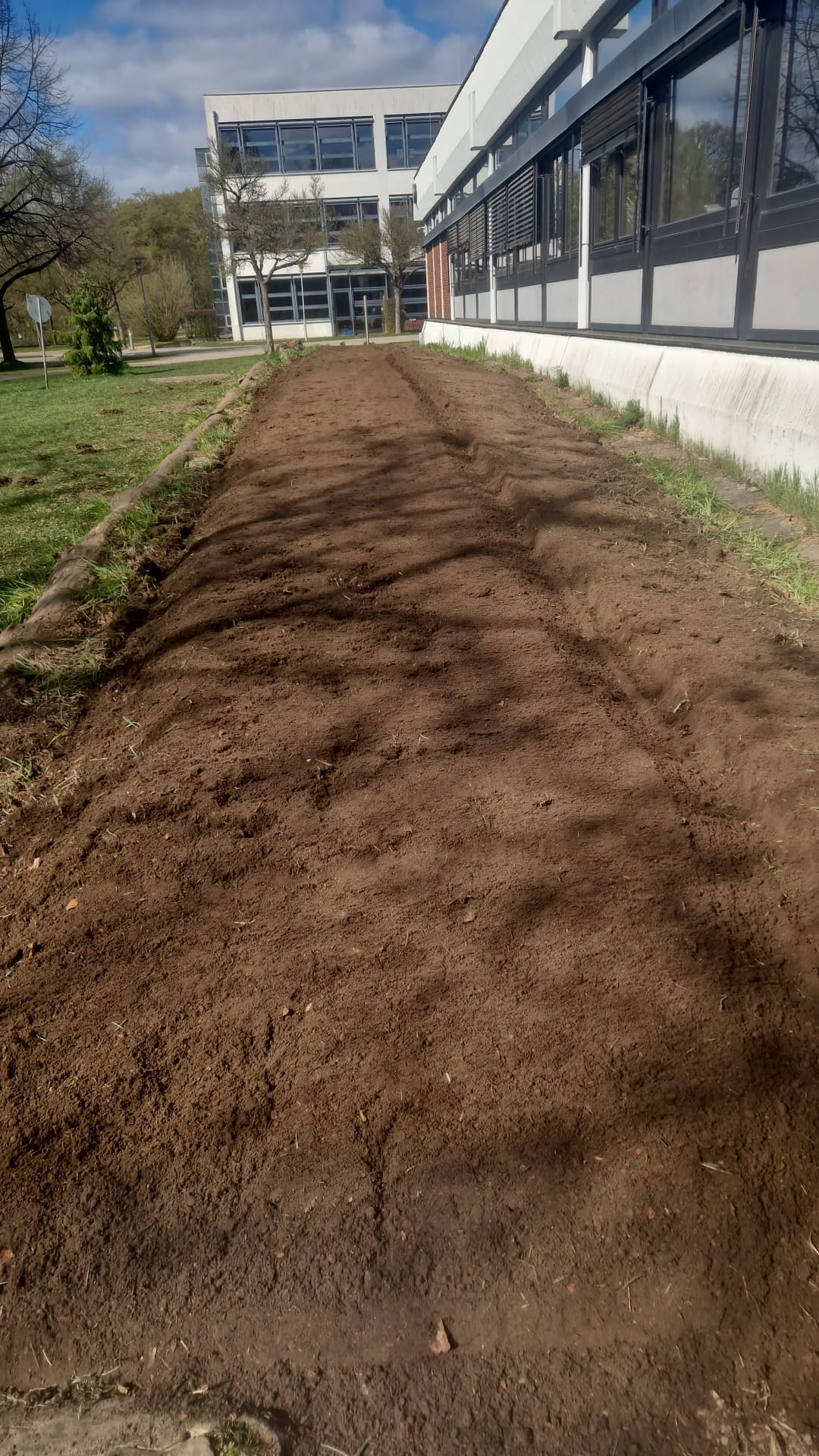Schlechte Noten des Landschaftspflegeverbands des Main-Kinzig-Kreises für die schuleigene Wildblumenwiese haben in diesem Frühjahr Entscheidungen nach sich gezogen. Die seit dem Jahr 2020 von Schülerinnen und Schülern angelegte Blühwiese war über die letzten Jahre zunehmend mehr von Gräsern überfrachtet worden, die den insektenfreundlichen Blumen kaum noch eine Chance gaben. So wurde die Fläche mit Unterstützung unterschiedlicher Schülergruppen in den zurückliegenden Wochen von den Gräsern befreit, durch das Gärtnerteam gefräst und schließlich durch die „Zukunftswerkstatt“, einem Wahlpflichtkurs der Jahrgangsstufe 10, mit heimischem Saatgut neu eingesät und gewässert. Schulgemeinde und Insektenwelt dürfen sich gleichermaßen auf das Aufgehen der Saat freuen.