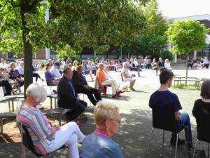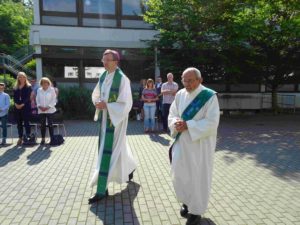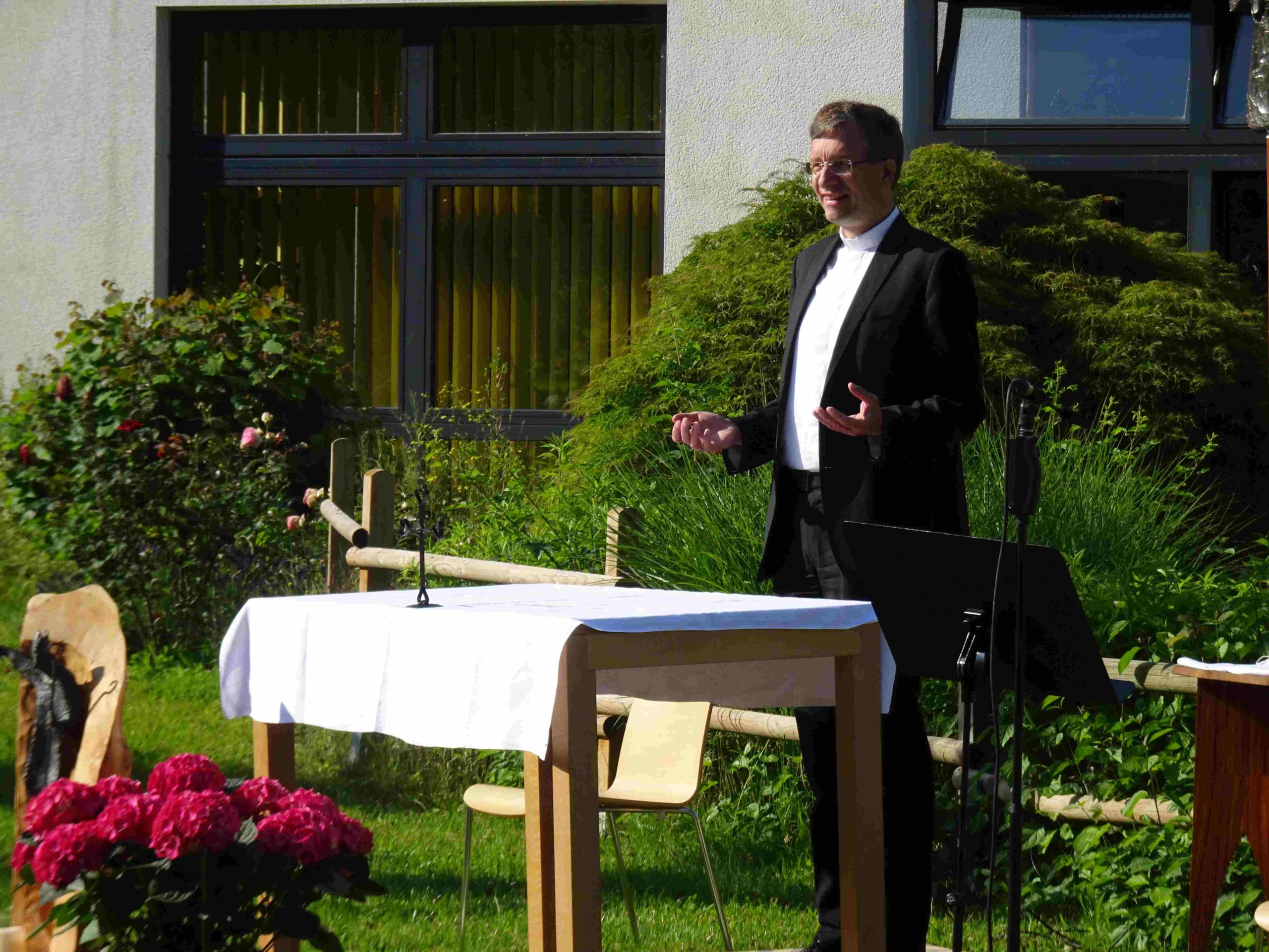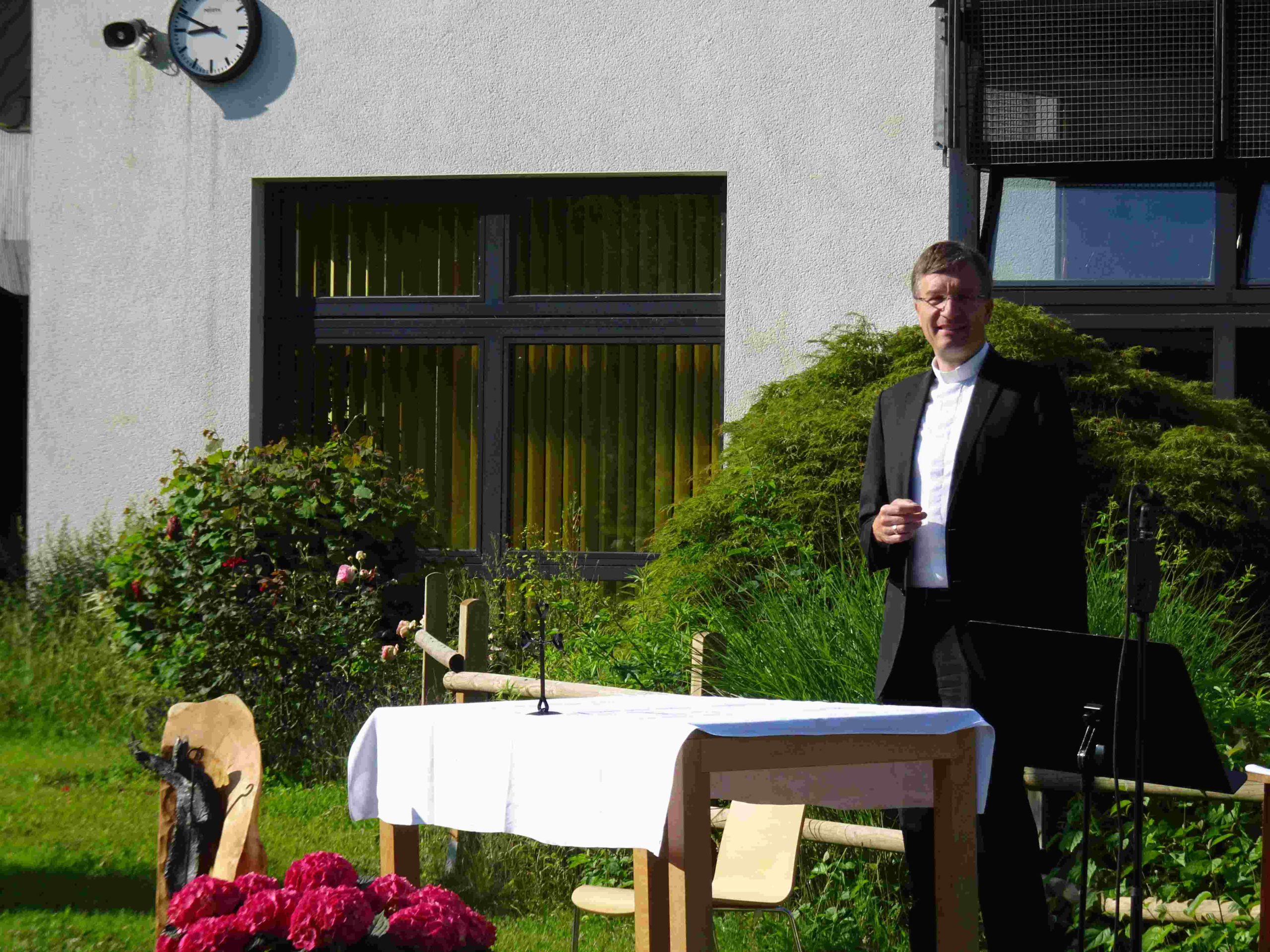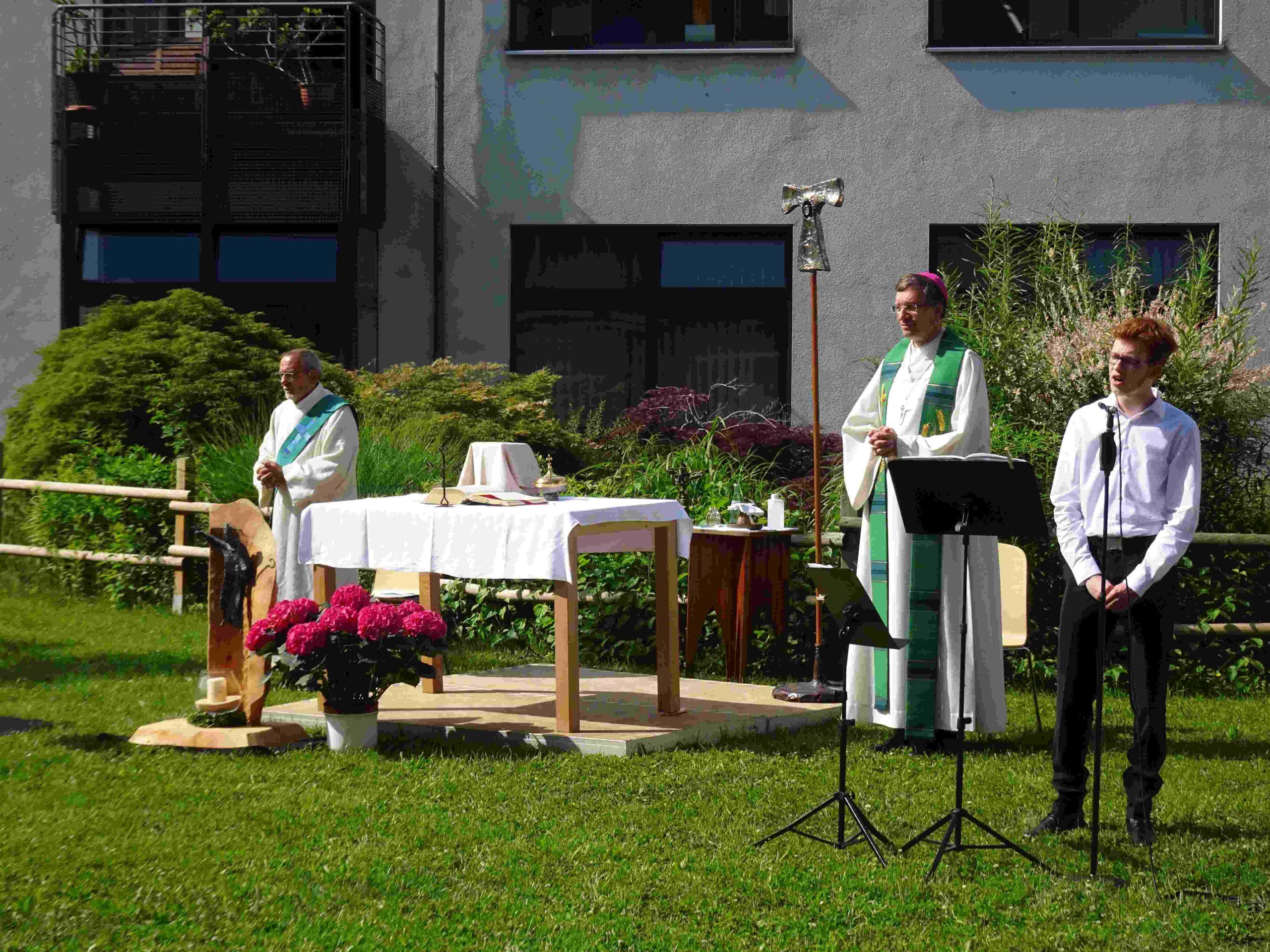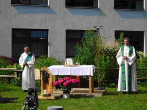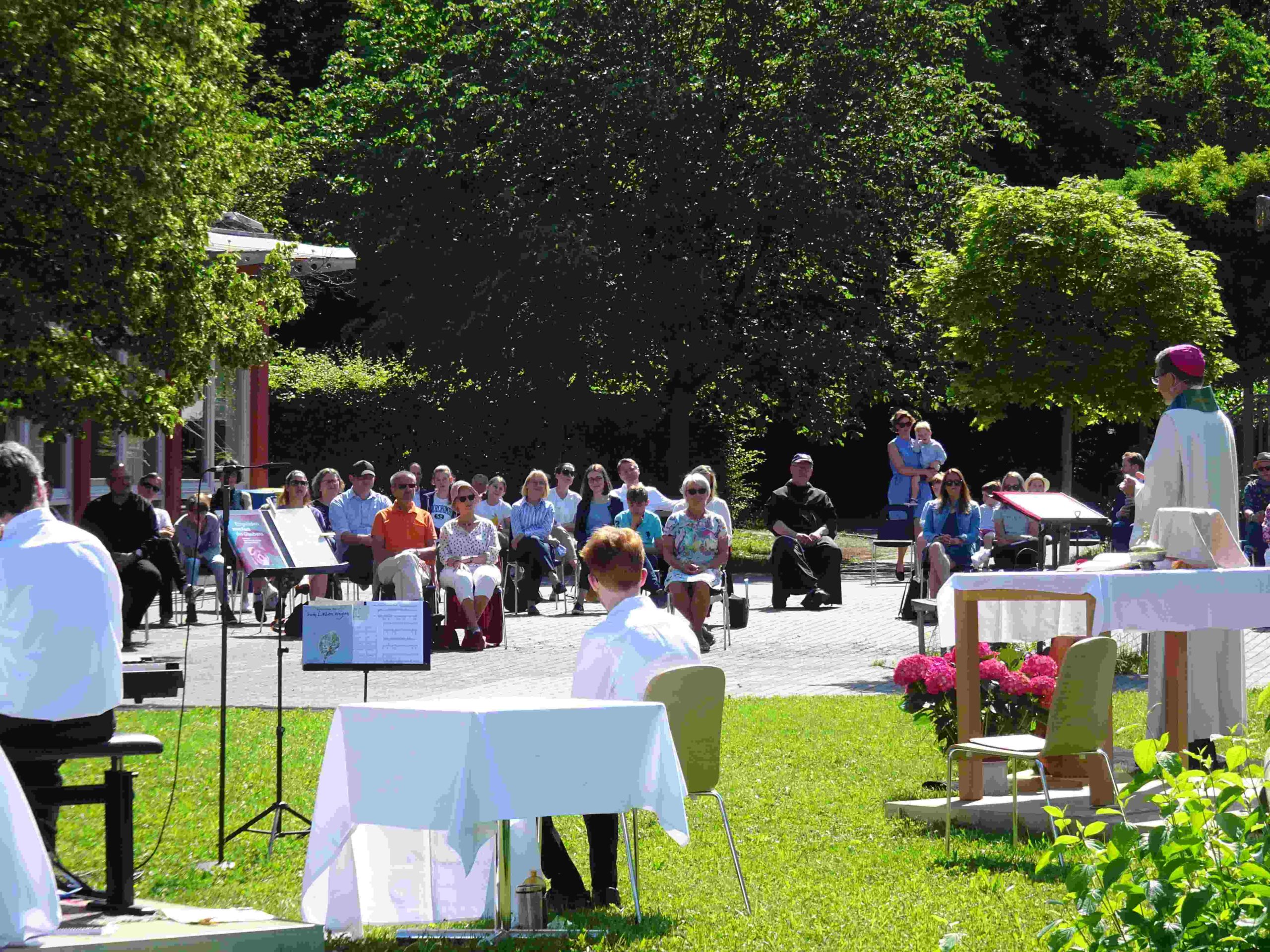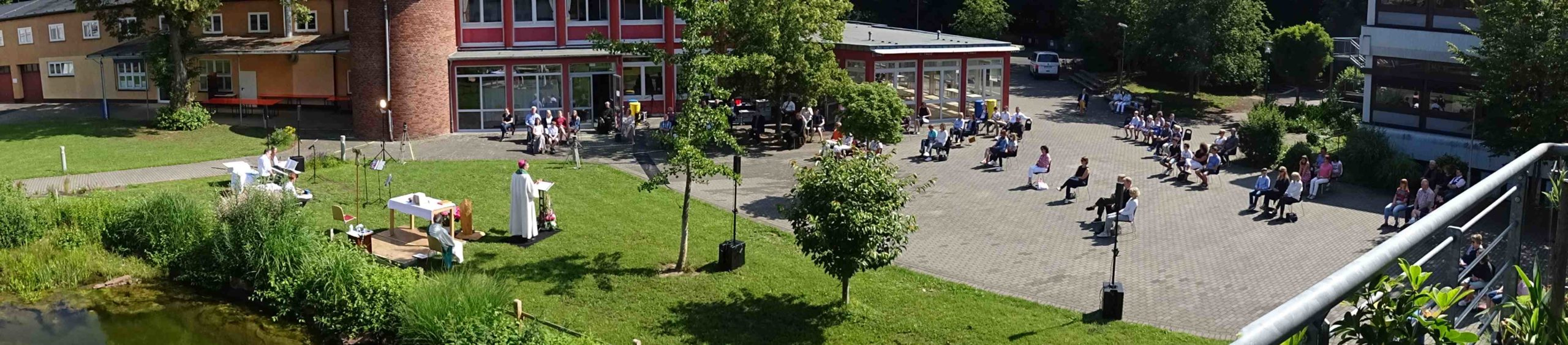 Da die Besuche von Gottesdiensten im Moment coronabedingt nur eingeschränkt möglich sind, geht der Fuldaer Bischof Michael Gerber on Tour. An verschiedenen Orten des Bistums feiert er Gottesdienste im Freien, die per Livestream online übertragen werden und so einem großen Publikum zugänglich sind. In dieser Reihe fand eine Messfeier auf dem Schulhof des Franziskanergymnasiums Kreuzburg statt.