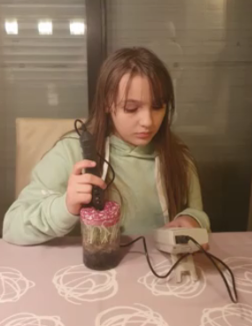 Lara B.(Klasse 5c) untersuchte, ob es Pflanzen gibt, die Kohlenstoffdioxid aus der Luft besser aufnehmen können als andere. Die Beantwortung dieser Frage könnte einen Beitrag zur Bekämpfung des Klimawandels leisten. Die Jury war beeindruckt und vergab den zweiten Preis und einen Sonderpreis im Fachbereich Biologie mit einem Jahresabonnement der Zeitschrift „GEOlino“.