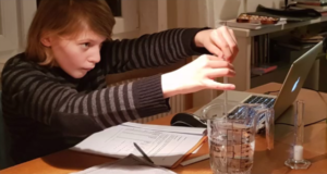 In einer Videokonferenz präsentierten eine junge Forscherin und zwei junge Forscher unserer Schule ihre Projekte der Jury mit einer PowerPoint-Präsentation und stellten sich den Fragen: