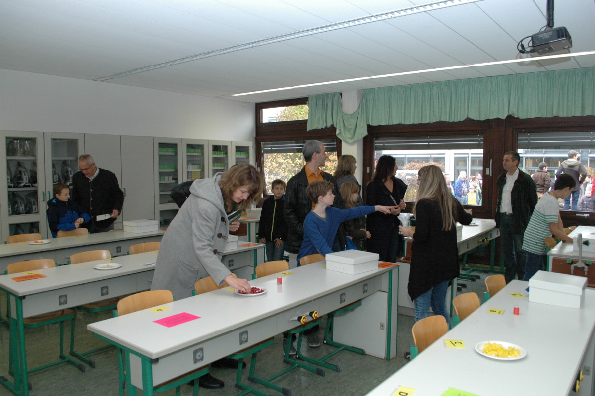 Mit großem Interesse ließen sich die Besucher über den sogenannten „Freien Lernbereich“ informieren. In einem Klassenraum konnte man die ersten Ergebnisse und viele Bilder zu den Projekten wie z.B. „Scrapbooking“, „Kunst und Musik – Erstellen eines Liederbuches“, „Leben am Limes“, „Im Kochtopf um die Welt“, „Forschen und Experimentieren“, in die sich die Schülerin der sechsten Jahrgangsstufe je nach Neigung und Interesse für jeweils ein Halbjahr einwählen können, bewundern.