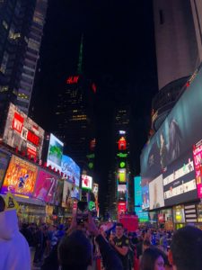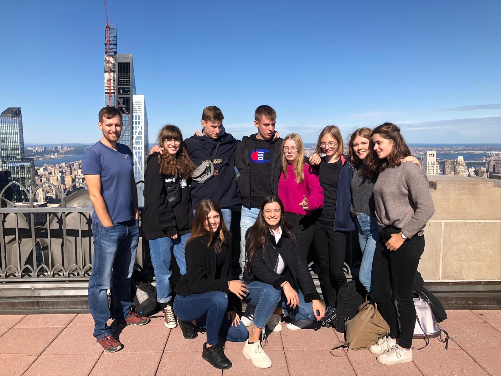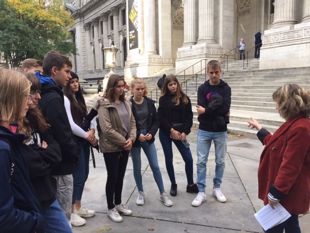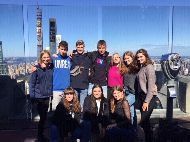 Nach einer Führung in der New York Public Library, ging es gestern auf das Dach des Rockefeller Center. Dort wurden wir mit strahlenden Sonnenschein und gewaltigen Fernblicken auf New York, vor allem den Central Park und das Empire State Building belohnt. Zeit fuer Fotos, Selfies und eine sagenhafte New Yorker Spezialität: Bagels. Besonders gespannt waren wir aber auf das Abendprogramm, ein Broadway Theaterstück, und den Times Square bei Nacht. „The Play that goes wrong“ überraschte uns alle. Unfassbar lustiges und hochklassiges Spiel. Ein Mitschüler beschwerte sich sogar, dass er Muskelkater vor lauter Lachen hätte. Ein toller Tag wurde schließlich von der Lichterflut des Times Square gekrönt, der uns eindrucksvoll deutlich machte, dass NYC die Stadt ist, die niemals schläft.