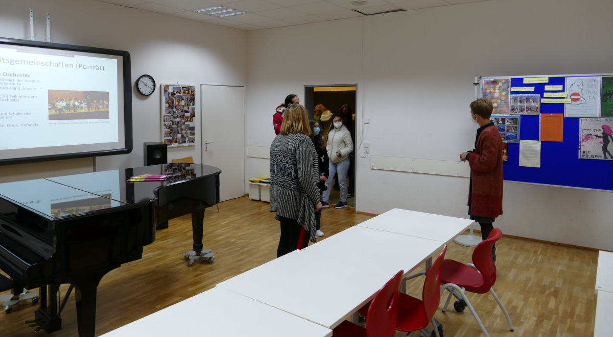 Über diese und weitere Angebote konnten sich die Familien während eines Rundgangs durch die Schule und in Gesprächen mit den Lehrerinnen und -lehrern, die Lerninhalte und Methoden ihrer Fächer präsentierten, einen Eindruck verschaffen. Besonderes Interesse galt dabei auch den Förderangeboten zur Hochbegabung oder zur Lese-Rechtschreibschwäche sowie den Informationen des Elternbeirats und des Freundeskreises der Schule.