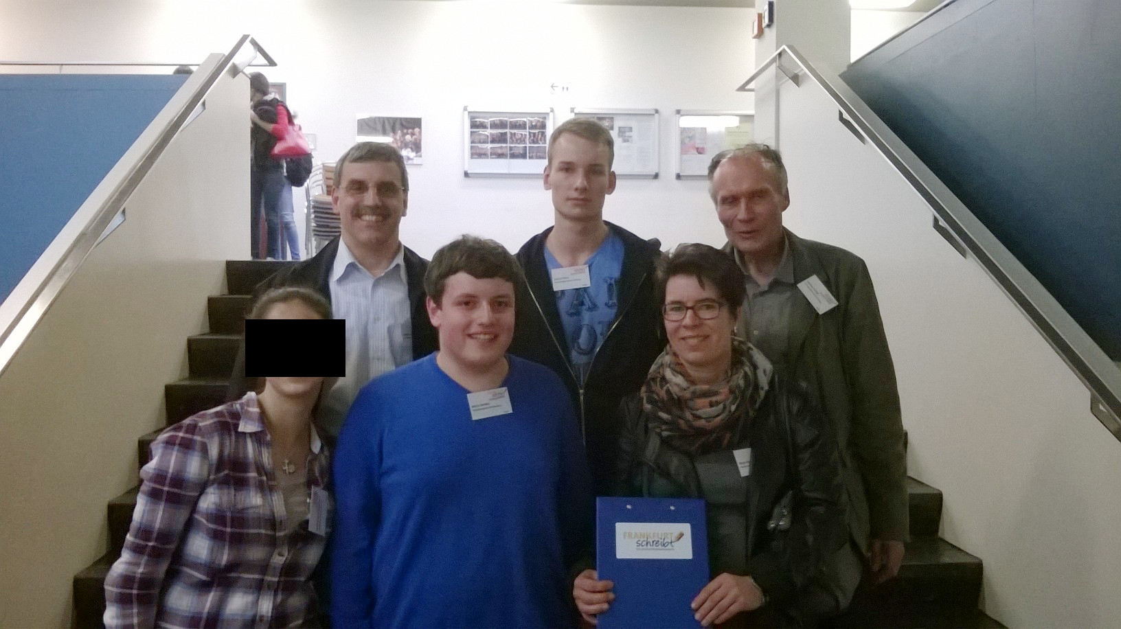 Seit zwei Jahren darf das Umland die Frankfurter herausfordern, und so waren am 15. Mai über 20 externe Schulteams in die Aula des Goethe-Gymnasiums gekommen, um zu beweisen, dass man in der Provinz ebenfalls gut schreiben kann. Auch von der Kreuzburg war ein Team dabei; den Regularien entsprechend bestand es aus Eltern, Schülern und Lehrern: Frau Wagner-Harthun, Frau Wawrik und Herr Soravia vertraten die Eltern; Diana B., Amelie H., Maria N., Justus P. und Marco S. (Jahrg. 10-11) die Schüler; und Herr Schieb trat für die Lehrer an.