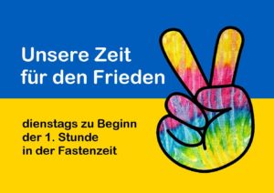 Auch in diesem Jahr waren für die Wochen der österlichen Bußzeit Fastenimpulse vorgesehen, die wir Ihnen auf der Homepage zur Verfügung stellen wollten. Angesichts des Krieges in der Ukraine werden wir die Anregungen nicht wie vorgesehen durchführen. Stattdessen wollen wir jeweils dienstags zu Beginn der 1. Stunde in der Schule für den Frieden beten.