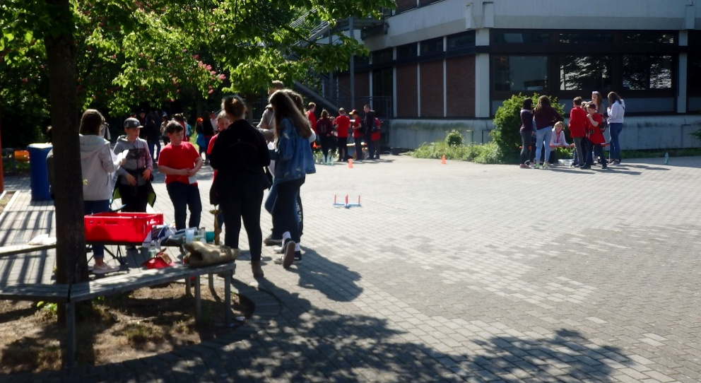 An 15 Stationen über das Schulgelände verteilt, konnten mit Aufgaben wie Bibelsprüche suchen, Seilspringen, Krocket und Boccia spielen, Schätzfragen lösen, Würfeln, Geschicklichkeitsprüfungen und einer Vielzahl weiterer Möglichkeiten die notwendigen Rohstoffe erspielt werden. Auf dem Spielfeld verbauten die Gruppen dann ihre Errungenschaften, um Punkte zu sammeln. Dazu gehörten neben Glück spielerisches Können und strategische Planung.