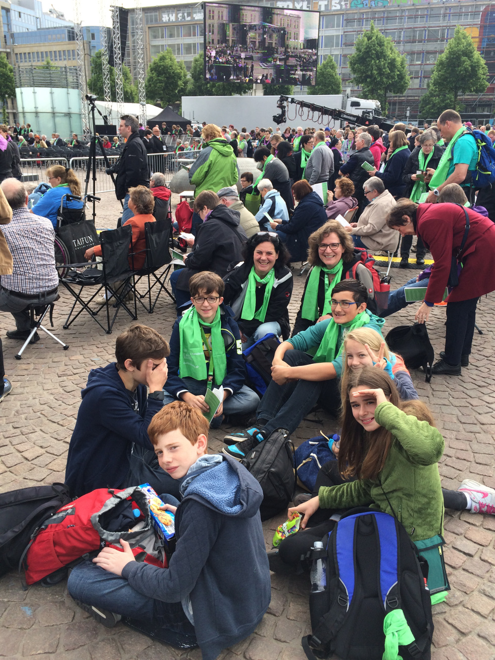 Die Gruppe unserer Schule beim Katholikentag sendete ein Foto von der Eröffnungsfeier und vom Festgottesdienst an Fronleichnam.
