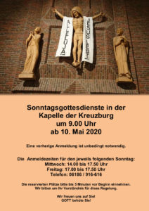 Ab dem 10. Mai 2020 werden in der Kapelle des Franziskanerklosters um 9.00 Uhr wieder öffentliche Sonntagsgottesdienste gefeiert.