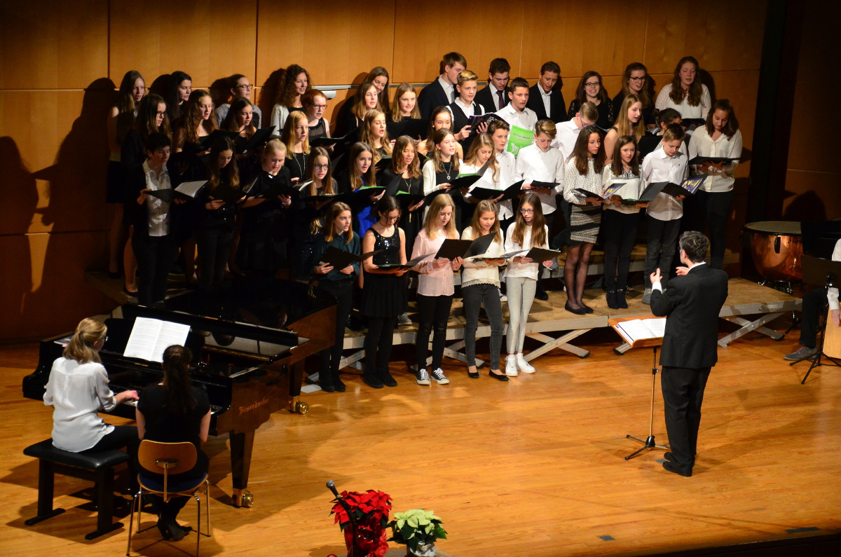 Vergessen werden soll hier aber nicht der eigentliche Anlass des Abends: das erste der beiden Adventskonzerte der Schule. In gewohnter Weise stimmten die Chöre und Orchester des Gymnasiums die Besucher auf die Weihnachtszeit ein. Vom 5er- und 6-er-Chor über den Jugend- und Kammerchor bis zum Elternchor, von der kleinen und großen Big-Band bis zum kleinen und großen Orchester wurde in einer vielfältigen und weihnachtlichen Stückeauswahl, das Können der einzelnen Gruppen gezeigt.